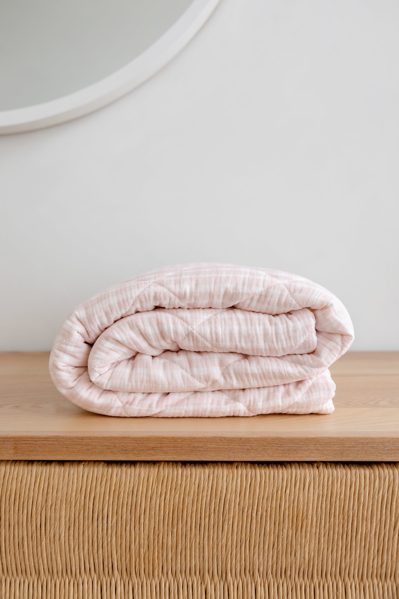 A soft, fluffy and breathable quilt blanket made for year-long cosiness. Use as a futon, play mat, couch throw or for some bedtime cuddliness. ☁️